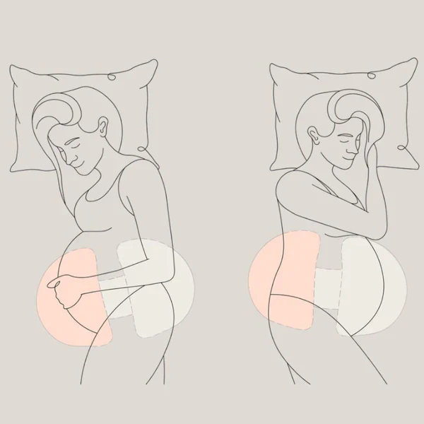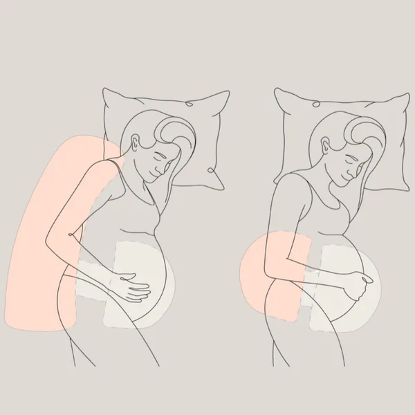 הכרית תומכת בגב התחתון, מחזיקה את הבטן ומרימה את הרגליים כדי לשחרר מתחים, ומאפשרת לישון לילה רצוף בתנוחה נוחה ובטוחה, שמפחיתה כאבים ומספקת לבייבי זרימת חמצן ולילה רגוע 🩵