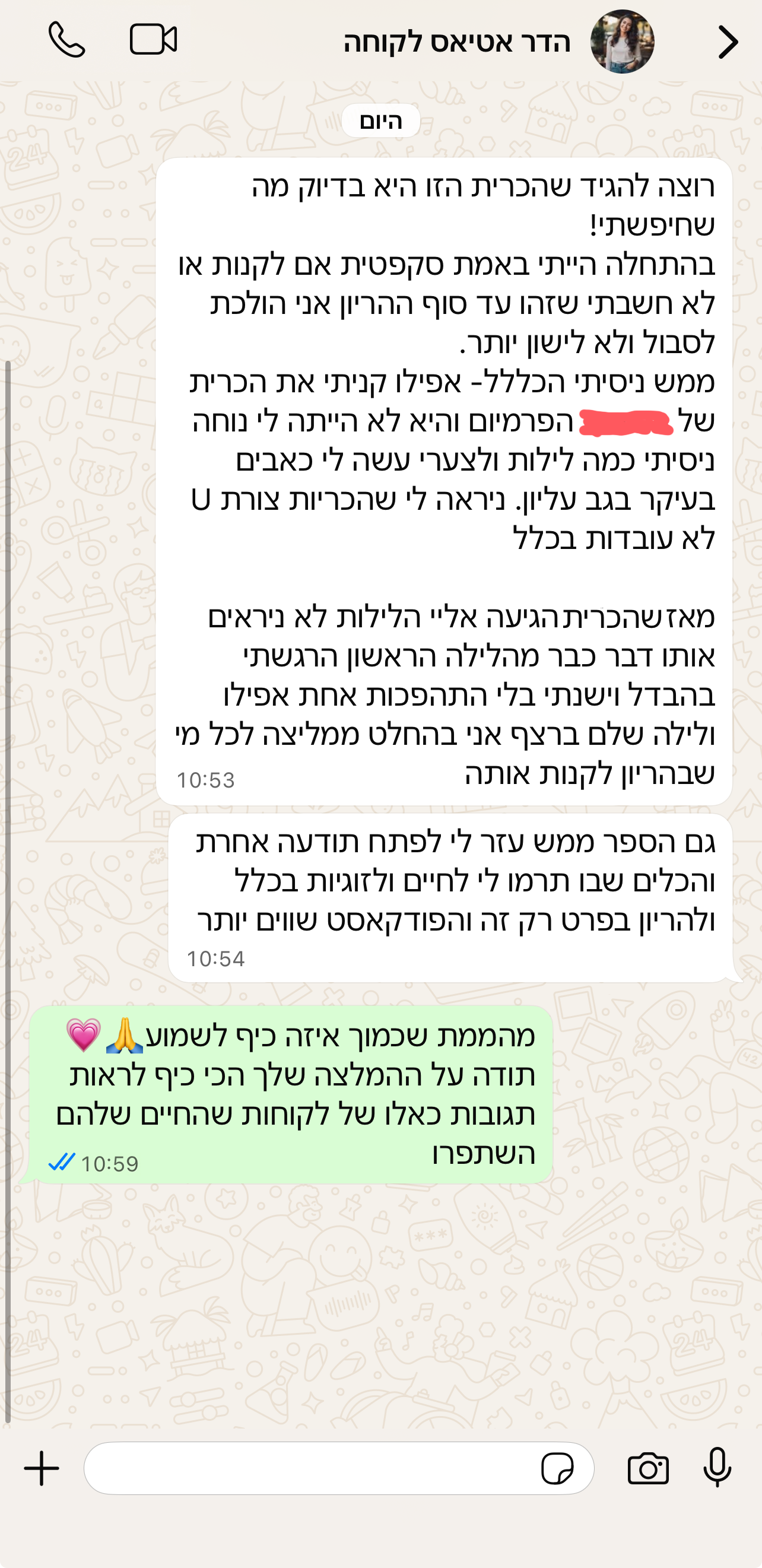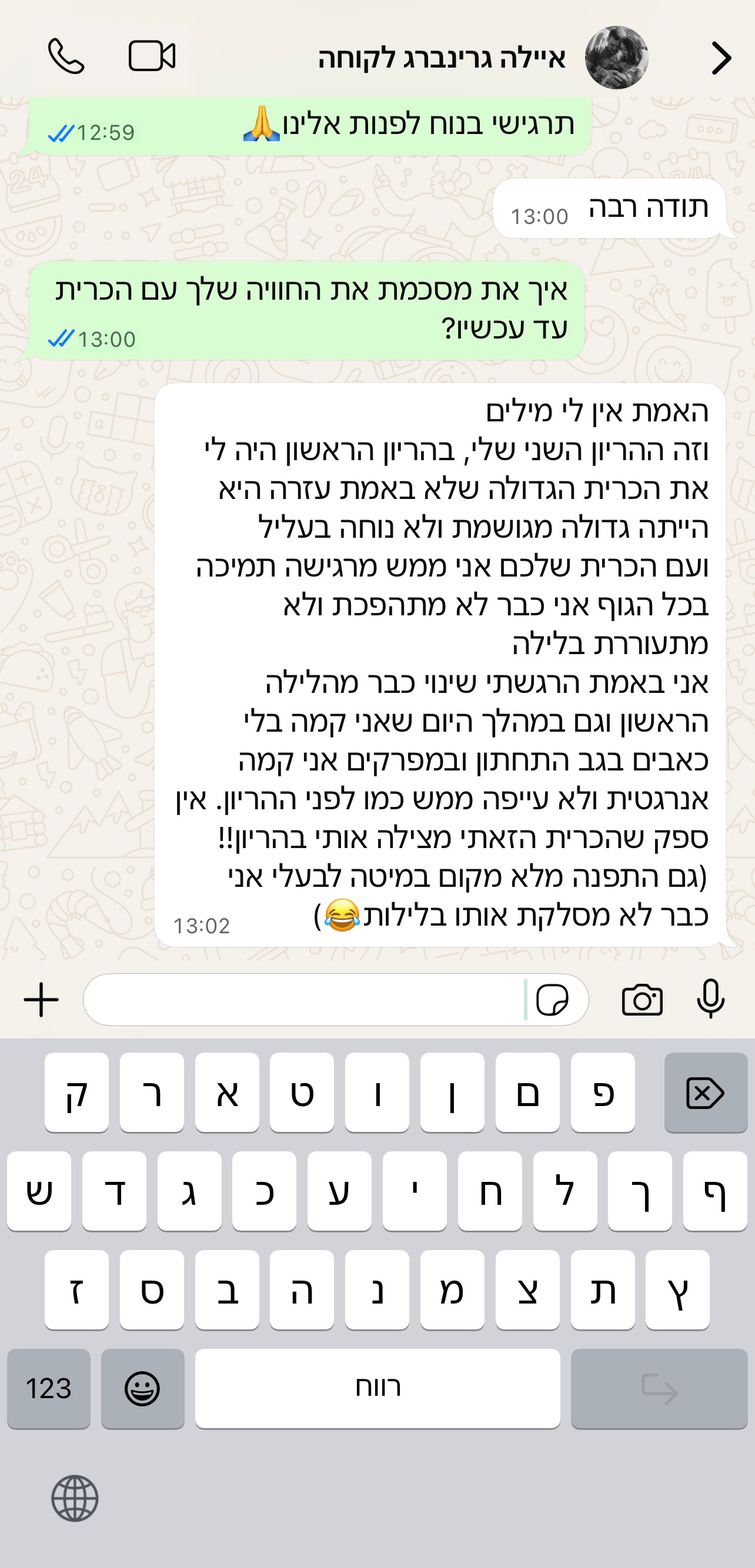 "זה פשוט שינה לי את החיים! סוף-סוף אני נרדמת לילה שלם בלי לקום מכל כאב קטן."